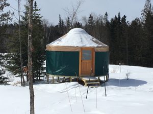 How to use the space continues to befuddle us. Legal issues — insurance — abound and we are looking into how best to resolve them. In the meantime, it’s been a great space for family and friends to stay. They all report how fun it is to sleep in a genuine “yurt.” (They all say it as though it’s the first time they’ve said the word; and, it probably is.) Here she is in winter: